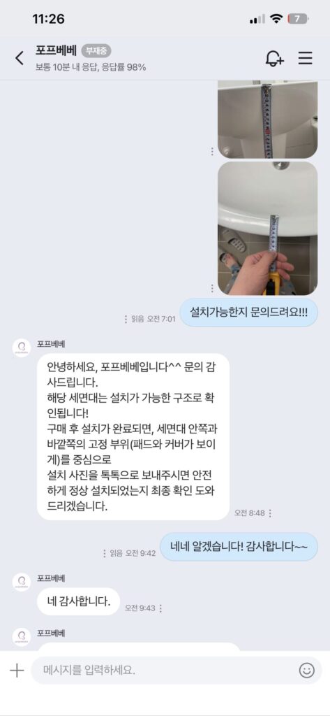 또 중요한건, 네이버에서 구매할 때 상품판매자분에게 설치 가능한 세면대인지 꼭 문의하셔야합니다. 그럼 판매자분이 설치 가능한지 확인해주세요^^