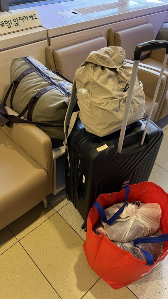 출산 전날에는 와이프가 봄빛병원에서 4박 5일, 조리원에서 2주간 지내야했기 때문에 출산 가방에 필요한 생활물품들을 챙겼어요. 제왕절개 이후 와이프 회복에 필요한 것들을 주로 넣었고, 남편인 제 짐은 사실 특별하게 챙긴건 없었습니다. 봄빛병원의 경우 남편의 베개와 이불을 주지 않아서 넣었고 그 외에는 치약, 칫솔, 내의/옷 몇벌 정도 준비해뒀습니다. 별로 챙기지 않았다고 생각했는데, 아래 사진 보니까 꽤 되네요..ㅎㅎ;; 그렇게